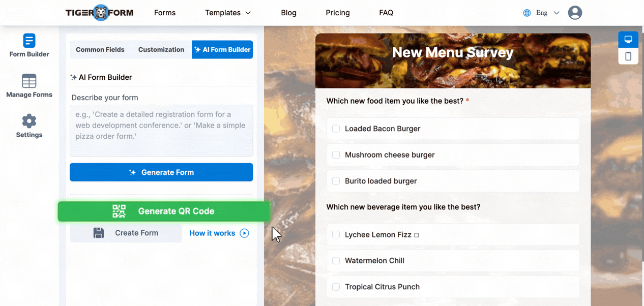 How to create a food survey form with an online form builder